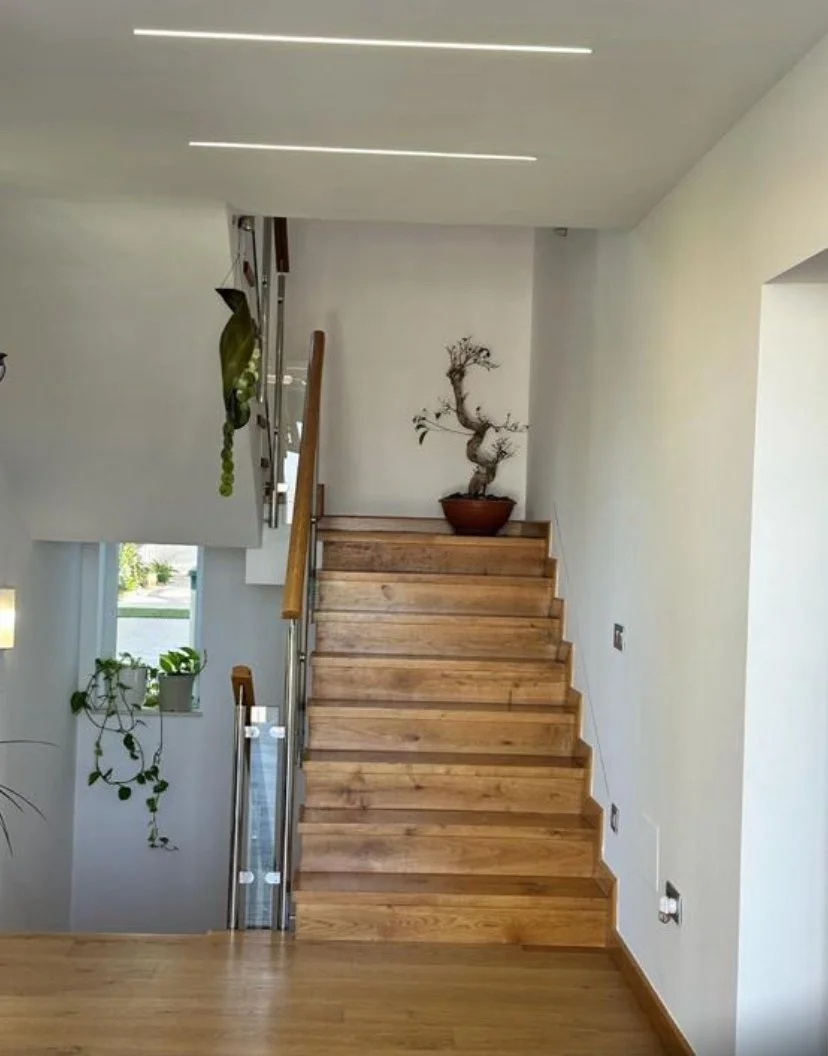 Upon entering this fabulous villa into a large hallway there is a beautiful staircase leading up to the upper floor and also down to the garage which houses several cars and also has a bathroom. Fabulous indoor area for entertaining guests. This immaculate villa has a wooden staircase and beautiful wooden floors throughout.